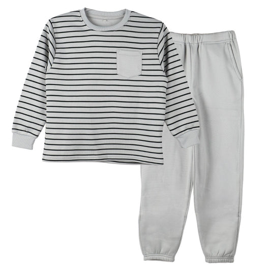 裏起毛 パジャマ キッズ 男の子 冬 長袖 ルームウェア 子供 ボーダー柄 男児 ジュニア 上下セット 130 140 150 160 cm セットアップ スウェット トレーナー ボーイズ カジュアル あったか 暖かい 保温 防寒 秋冬 冬用 長ズボン ポケット付き 部屋着 プレゼント ギフト