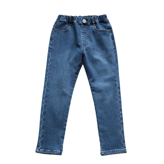子供 ストレッチデニム 長ズボン ロングパンツ 90~160cm (ズボン デニム ジーンズ ジーパン 男女兼用 キッズ ジュニア こども 子供 子供服 ボトムス 通園 通学 デイリー) (在庫限り)