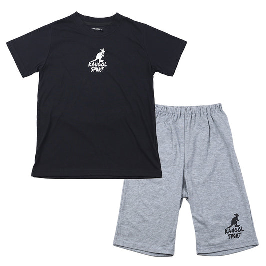 キッズ パジャマ 半袖 半ズボン 男の子 カンゴール 130 140 150 160 cm 子供 春 夏 ルームウェア 部屋着 上下セット セットアップ ジュニア 子供服 黒 ブラック 白 ホワイト