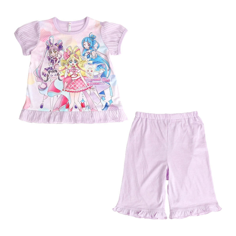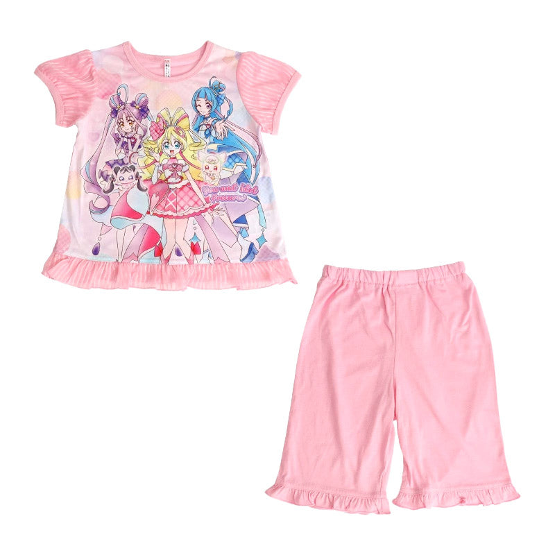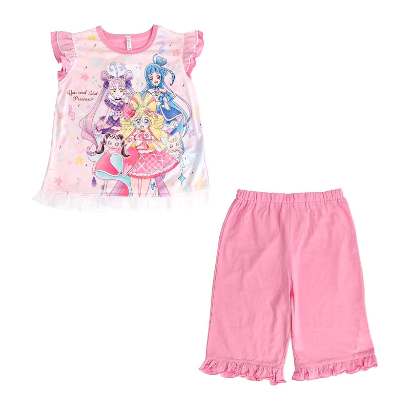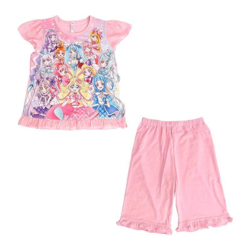 半袖トップスと半ズボンの2点セット+「光る勇気リング」つき!プリキュアたちの迫力あるプリントが可愛いデザインです♪