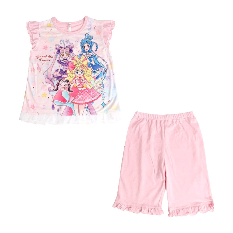 光るパジャマ プリキュア 半袖 パジャマ 女の子 キッズ 夏 キミとアイドルプリキュア 100cm~130cm 110cm 120cm 女児 子供 部屋着 ルームウェア 小学生 幼稚園 入園祝い 入園準備 キャラクター フリル (在庫限り)
