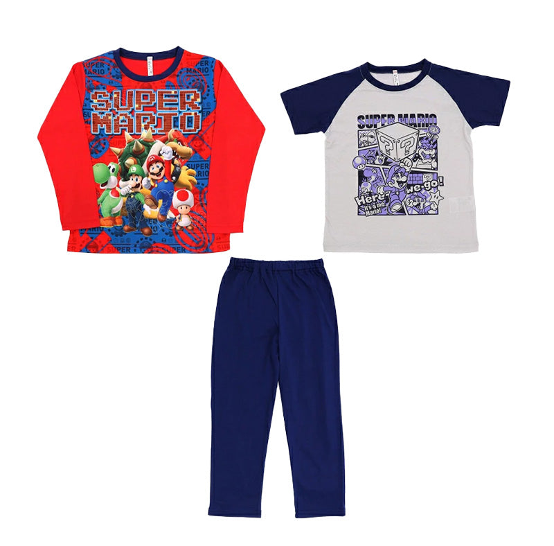 スーパーマリオ キッズ 光るパジャマ 半袖 長袖 男の子 上下セット 110~130cm マリオ 子供 ルームウェア 子供服 男児 長ズボン お泊り保育