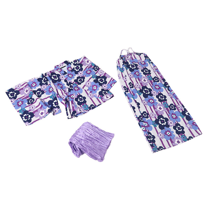 子供/浴衣/セパレート/ワンピース/2Way/子ども/こども/ジュニア/小学生/中学校/アウター/ルームウェア/涼しい/夏/和服/和装/夏服/夏物/上下セット/簡単/着付け/紫/水色/しまむらファンにおすすめ k-room-sum k-out 934-31/DR/dr010