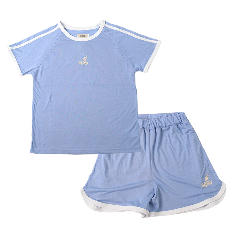 キッズ パジャマ 半袖 半ズボン 女の子 カンゴール 130 140 150 160 cm 子供 春 夏 ルームウェア 部屋着 上下セット セットアップ ジュニア 子供服 水色 ブルー 灰 グレー (在庫限り)