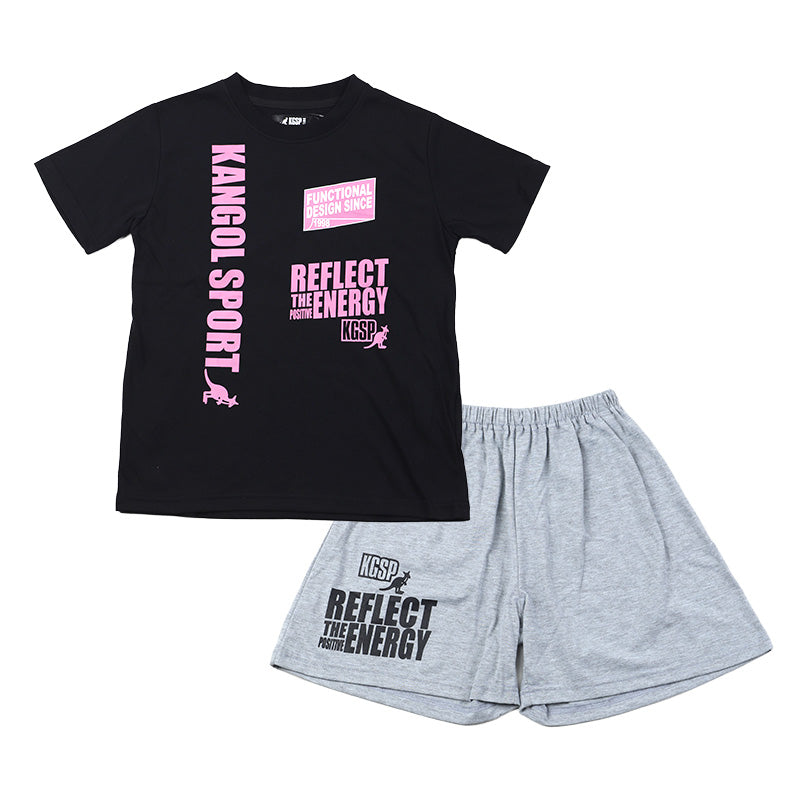 キッズ パジャマ 半袖 半ズボン 女の子 カンゴール 130 140 150 160 cm 子供 春 夏 ルームウェア 部屋着 上下セット セットアップ ジュニア 子供服 黒 ブラック 肌 (在庫限り)
