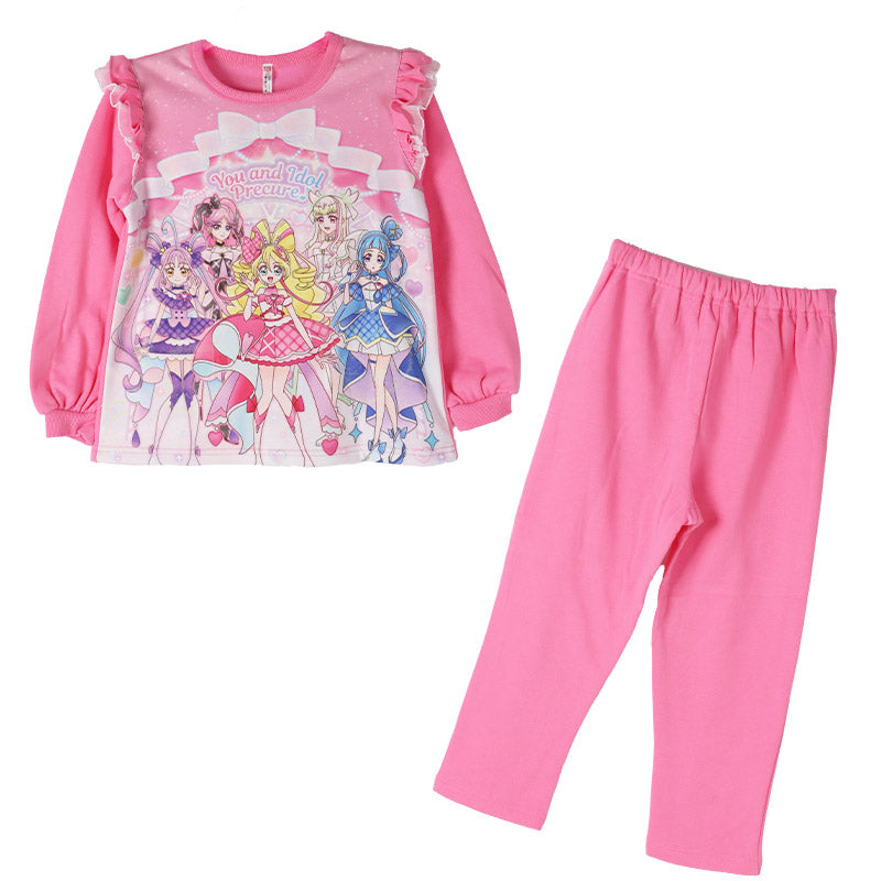 光るパジャマ プリキュア パジャマ 裏起毛 長袖 女の子 キッズ トレーナー 光る 冬 上下セット 100 110 120 130cm 女児 子供 キミとアイドルプリキュア お泊り保育 パジャマ上下 ルームウェア ルームウエア 部屋着 寝巻き 寝間着 女の子用 綿混 大人気