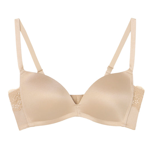 ブラ 脇肉 ノンワイヤー レディース ブラジャー ノンワイヤーブラ M L LL やわらかい モールドカップ ひびきにくい 可愛い 背中すっきり シンプル 無地 レース 花柄