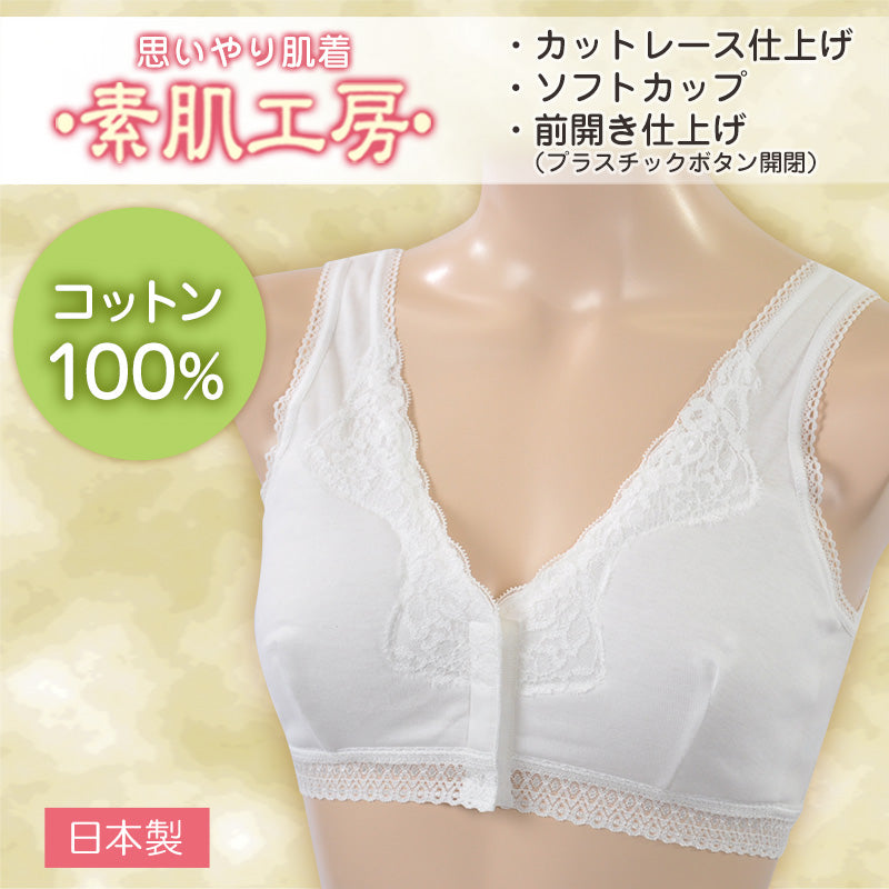 資材調達から縫製、検品に至るまですべて国内で行っている高品質な前あきブラジャー。