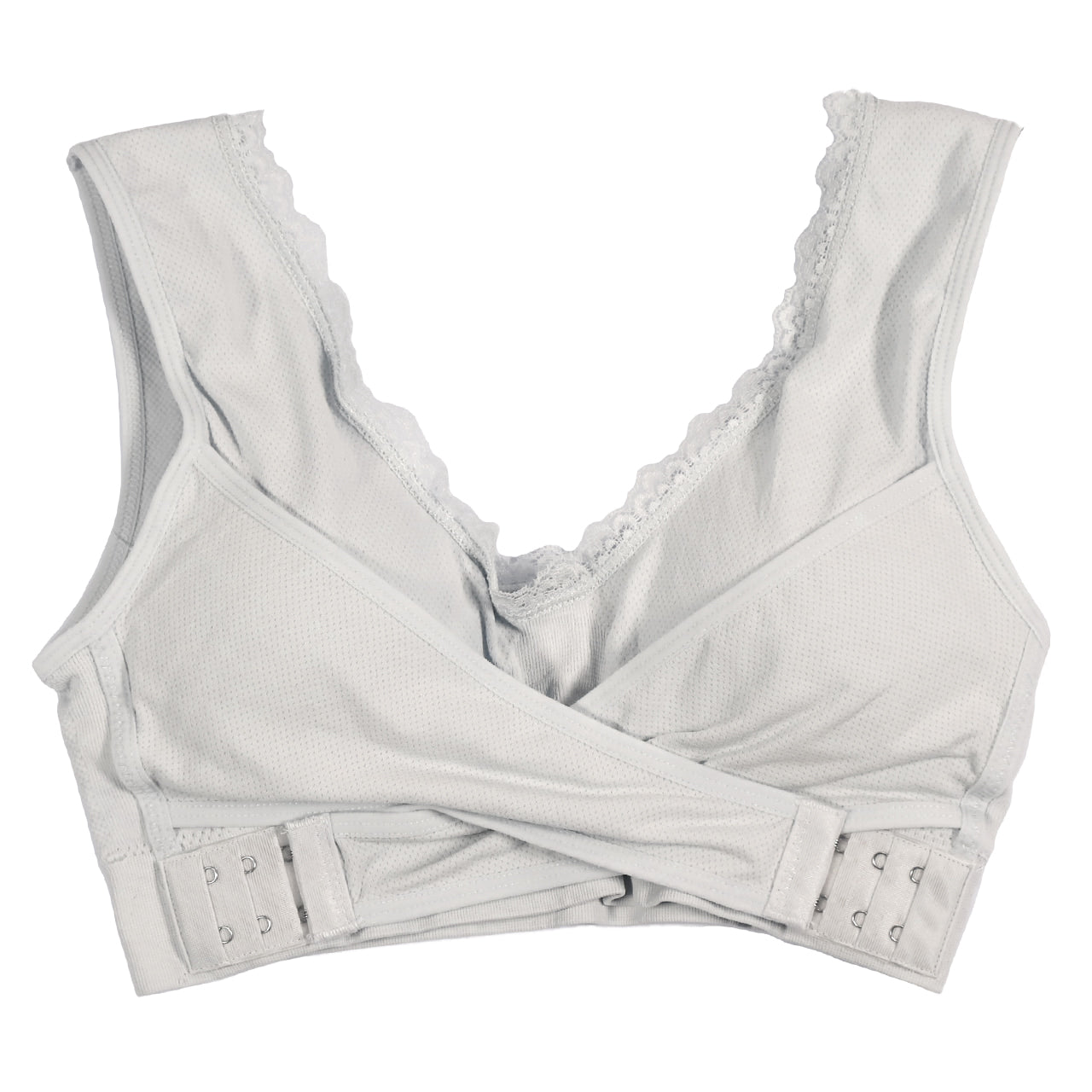 ノンワイヤーブラ レディース ハーフトップ カップ付き フロント クロスベルト M~LL (下着 ブラジャー インナー メッシュ ナイトブラ 美胸 バストケア 楽 らくちん) (在庫限り)