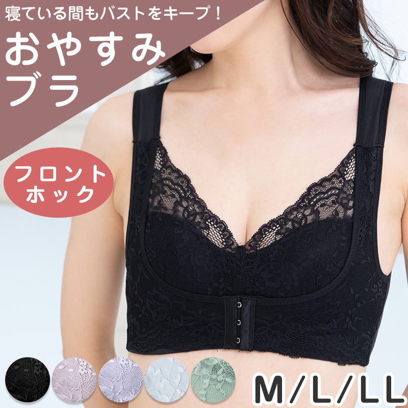 ノンワイヤーブラ フロントホック 育乳 ナイトブラ 補正 ブラジャー M L LL ねるねん 前開き ブラジャー 前あき ブラ レディース 下着 インナー レース かわいい