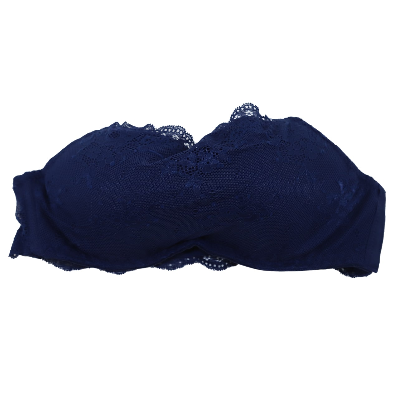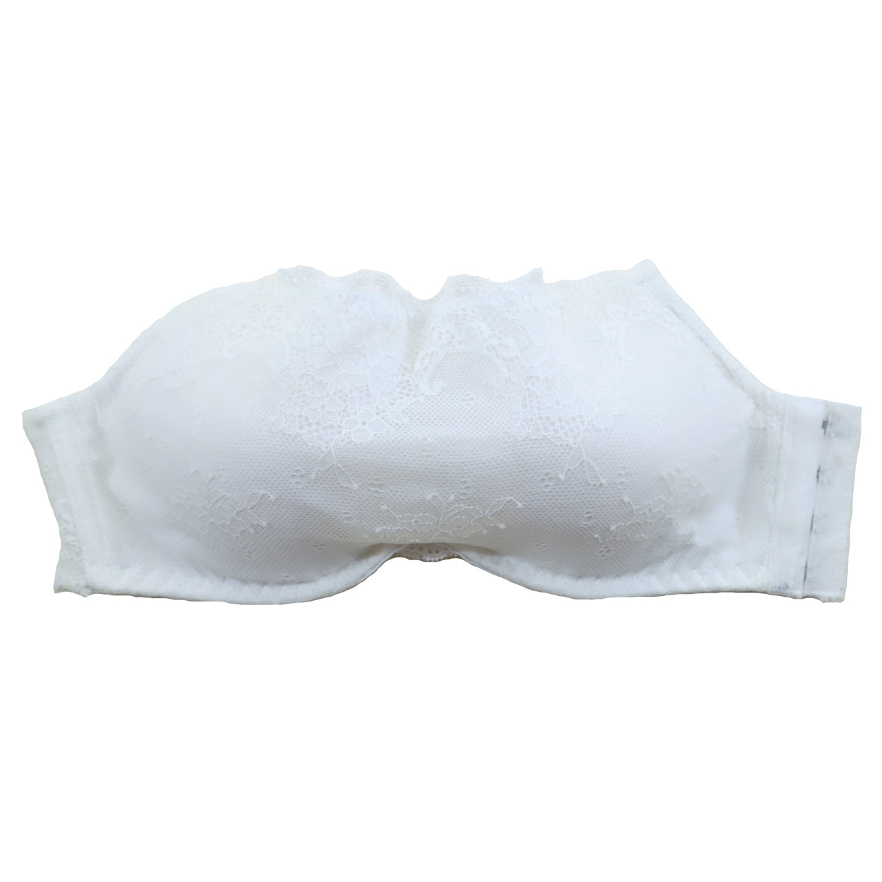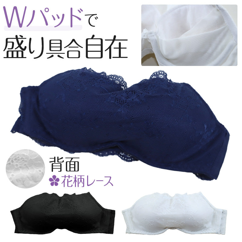 背面の花柄レースが美しい、ワイヤー入りチューブトップブラです。