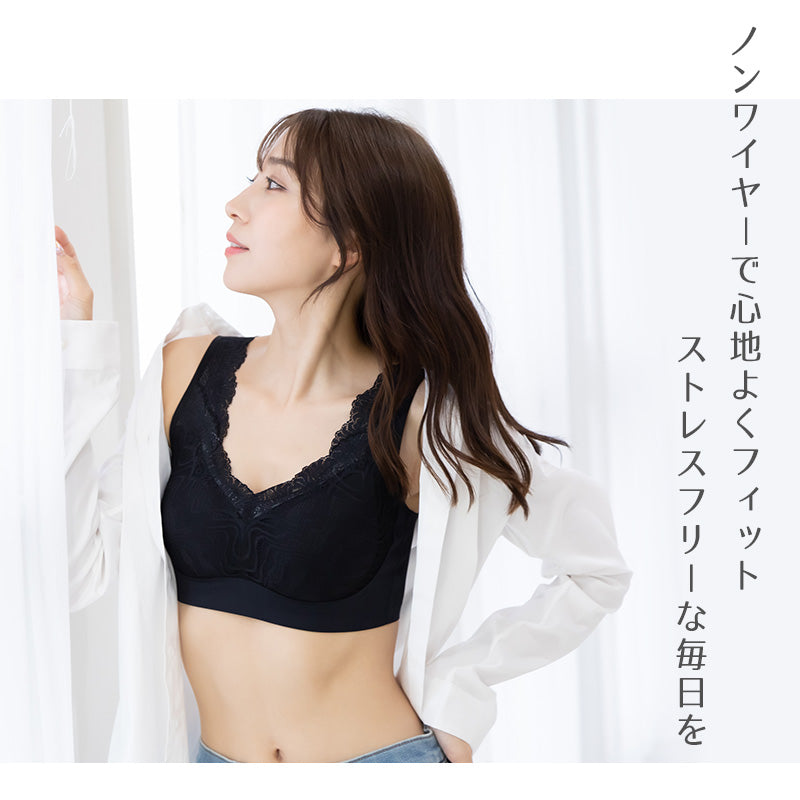 普段着やリラックスタイムにもおすすめの楽な着心地のノンワイヤーブラジャーです。