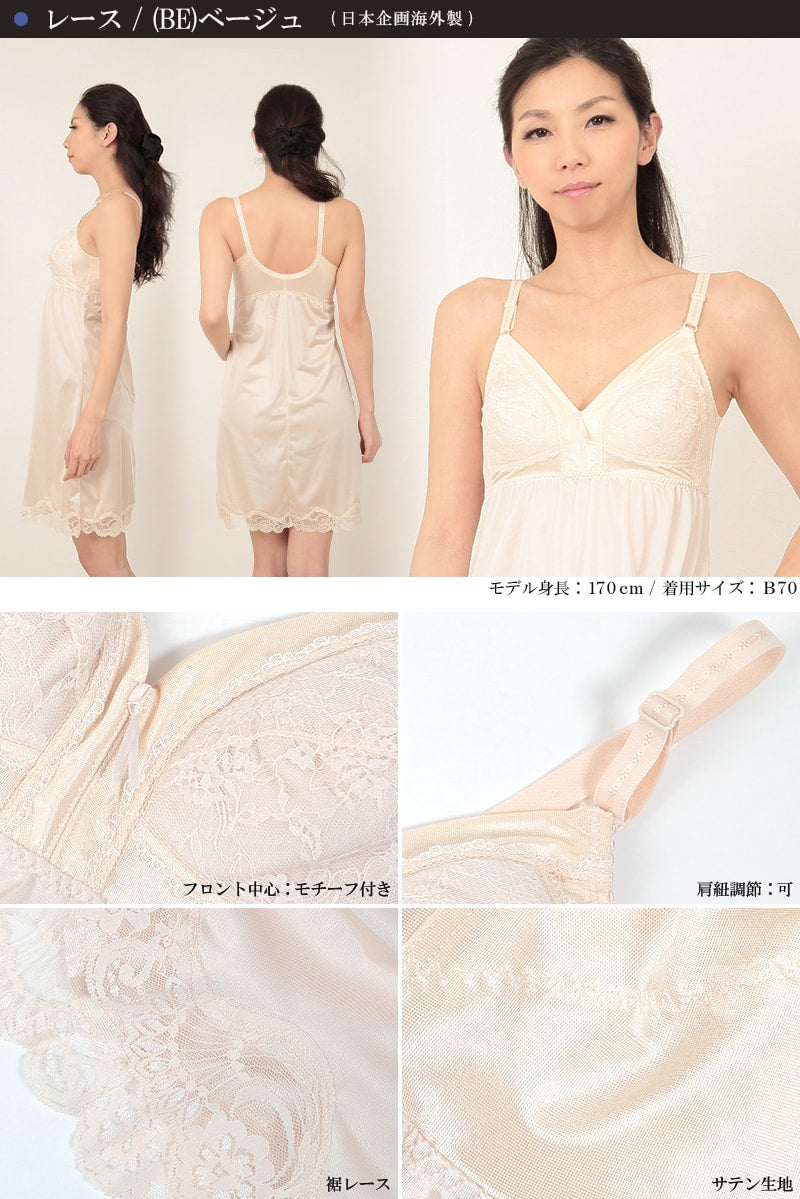 カップ付き スリップ インナー ロング丈 ブラスリップ キャミソール 90cm丈 A70~B95 (下着 レディース ランジェリー ワンピース ペチコート フルカップ ノンワイヤー サテン 静電気防止) (在庫限り)