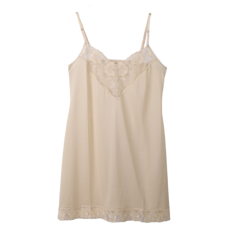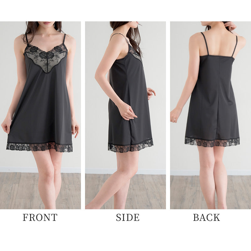 デザイン性にも優れており、胸元と裾に広幅のレースが配されています。