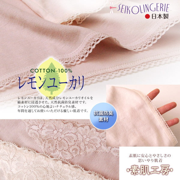 抗菌防臭効果に優れた天然成分「レモンユーカリオイル」を綿生地に浸透させ、防臭効果を発揮します。