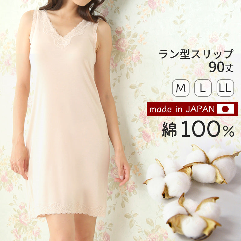 ランジェリー ラン型 スリップ 90cm丈 レディース 綿100 M~LL