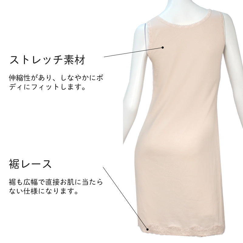 ランジェリー ラン型 スリップ 90cm丈 レディース 綿100 M~LL (袖なし インナー ワンピース ロング 長い丈 日本製 国産 綿100% 浴衣 大きいサイズ M L LL) (在庫限り)