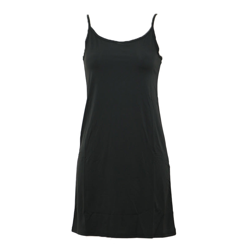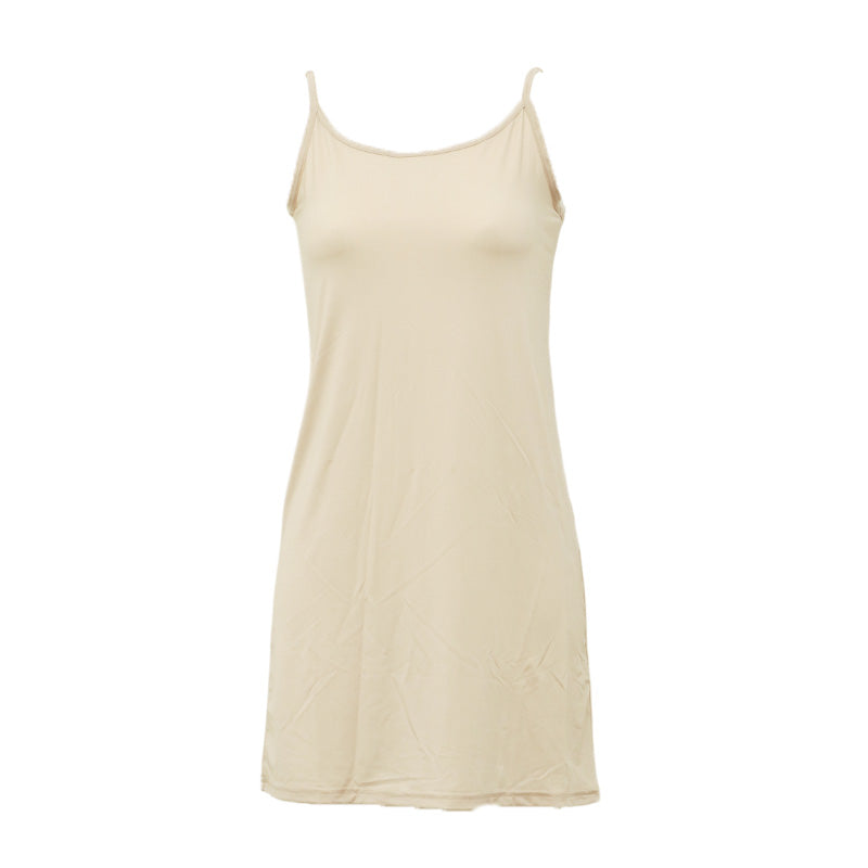 スリップ キャミソール 透けない レディース 80cm丈 S M L LL ワンピース インナー 透け防止 ランジェリー ペチコート 下着 肌着 ツルツル 肌色 黒 シンプル 母の日