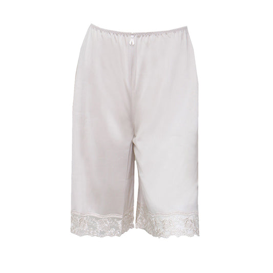 シルク キュロット レディース レース付き ロング丈 M~LL シルク100% オーバーパンツ 膝下 ペチパンツ ペチパン ペチコート 女性 下着 肌着 スカートインナー 静電気 透けない 冷え取り 通気性 スラックス下 敏感肌 快適 柔らかい 肌に優しい (送料無料)