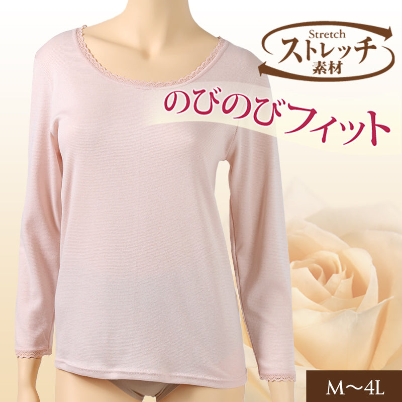 婦人 のびのびフィット 8分袖インナー 大きいサイズ のびる ストレッチ 伸縮性 長袖 快適 やさしい 肌触り なめらか M~4L