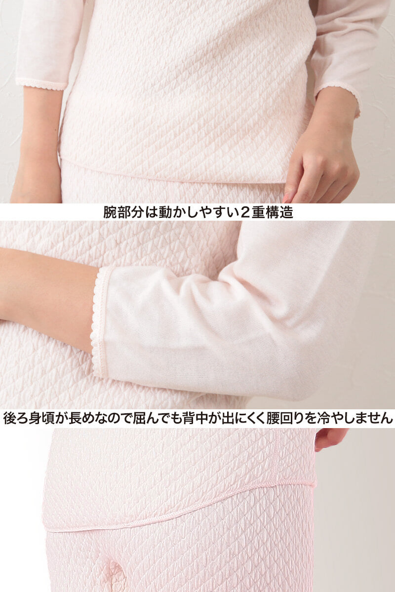 ひだまり 極 婦人8分袖インナー S~LL (肌着 長袖 レディース 暖かい 冬 下着 インナー s ll キルト あったか 防寒 ギフト)