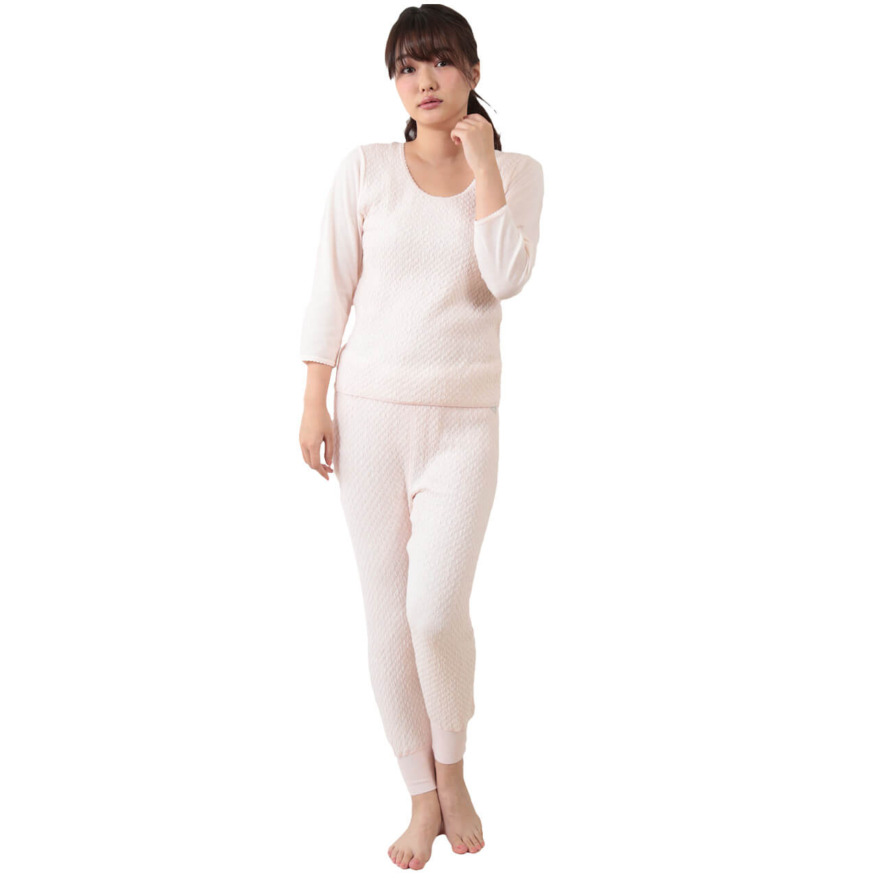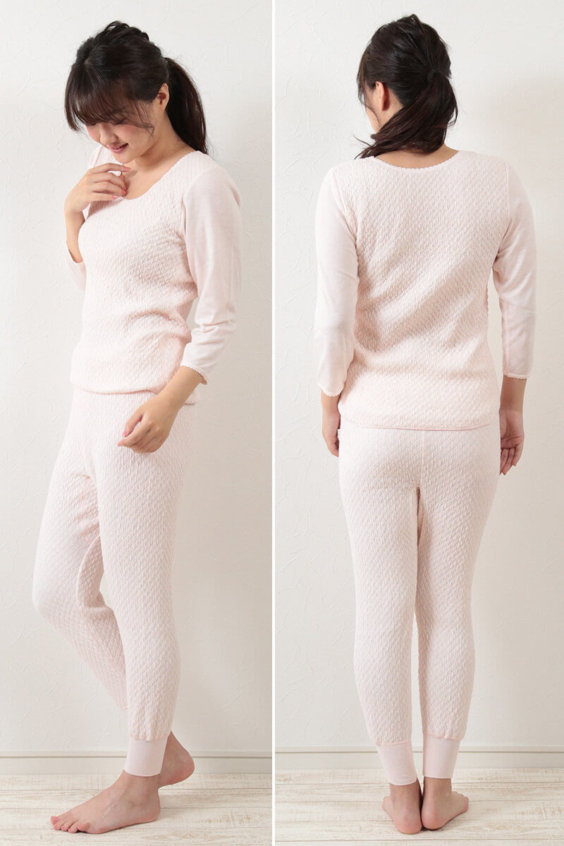 【レディース】/【長ズボン下】/【長袖】/【10分丈】/【長袖丸首シャツ】/【S】/【M】/【L】/【LL】/【ピンク系】/【冬物】/【日本製】/【抗菌防臭】/【消臭加工】/【しめつけない】/【あったかい】