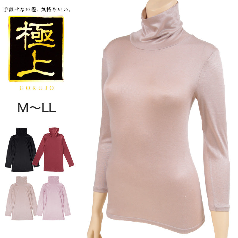 極上 ハイネック 8分袖 インナー レディース 長袖 M~LL 日本製 タートルネック 保温性 婦人 女性 下着 肌着 あったか 薄手