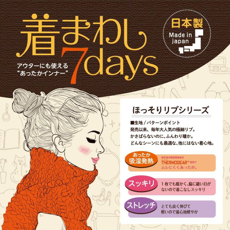 「着まわし7days」シリーズより、婦人用 デコルテネック長袖インナーです。