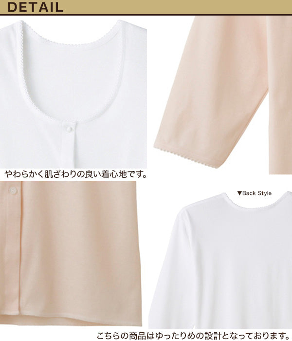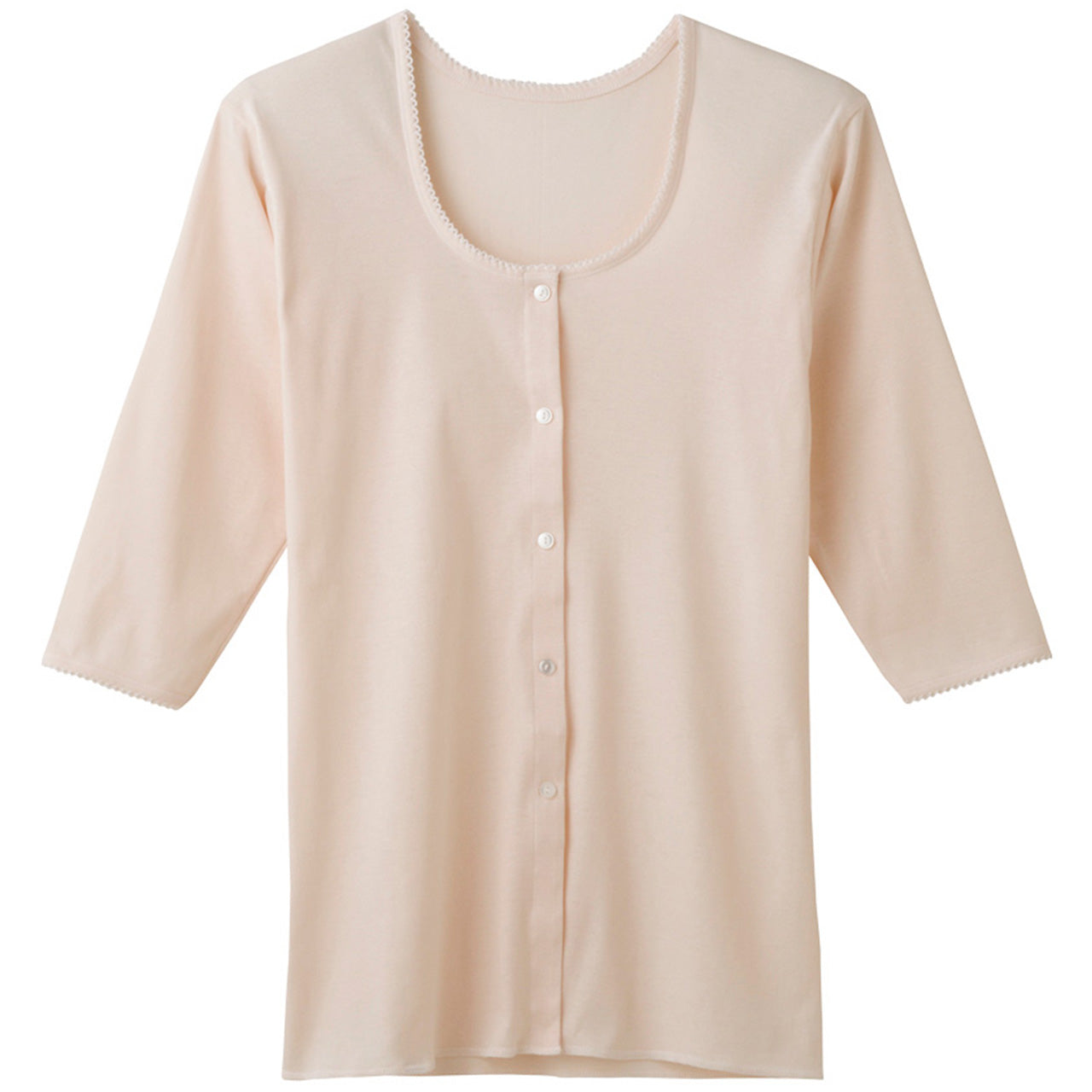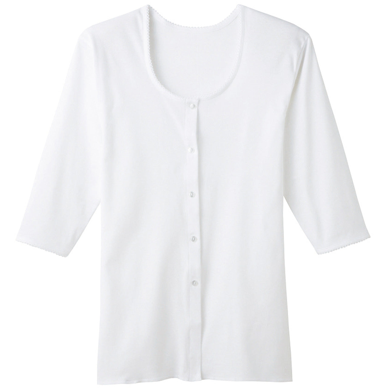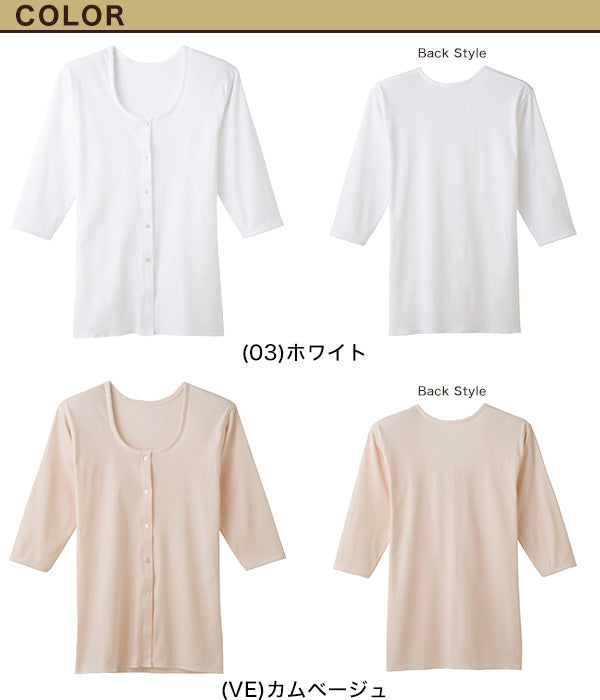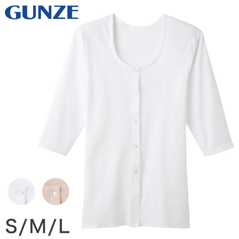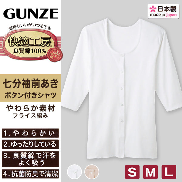 グンゼ 快適工房 婦人 7分袖 前開き 肌着 シャツ S~L レディース 綿100% 長袖 女性 下着 インナー ボタン付き コットン 白 ベージュ 日本製 S M L GUNZE