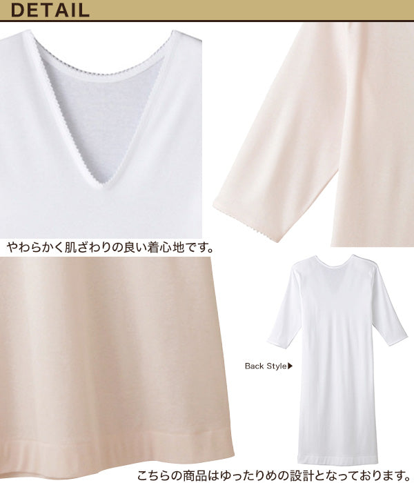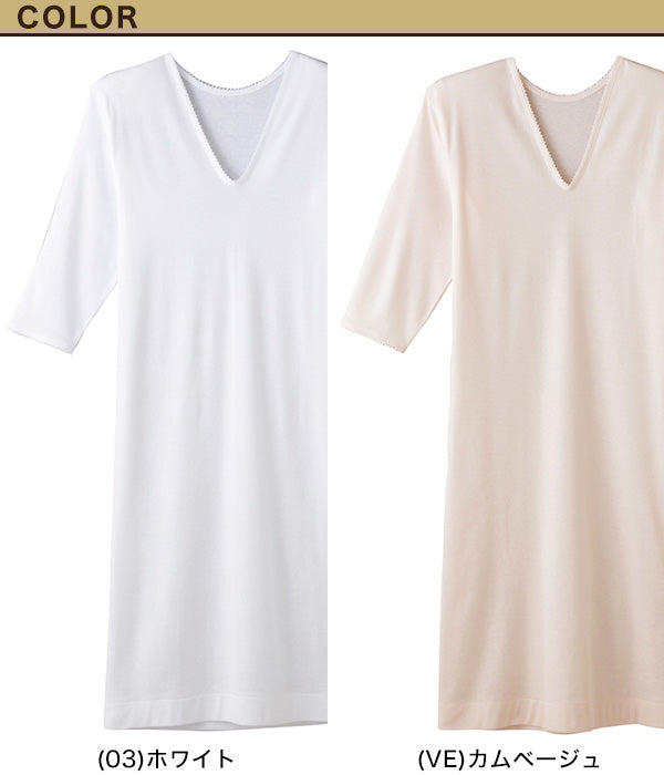 グンゼ 快適工房 婦人 7分袖シュミーズ LL (レディース シャツ シミーズ GUNZE 綿100% V首 女性 下着 肌着 インナー 白 ホワイト やわらか 日本製 大きいサイズ) (在庫限り)