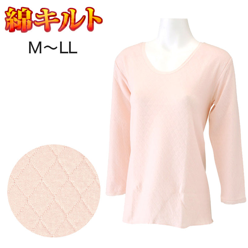 綿キルト 8分袖スリーマ M~LL 婦人用 肌着 下着 女性 インナー 綿混 秋 冬用 暖かい 長袖