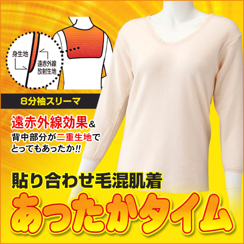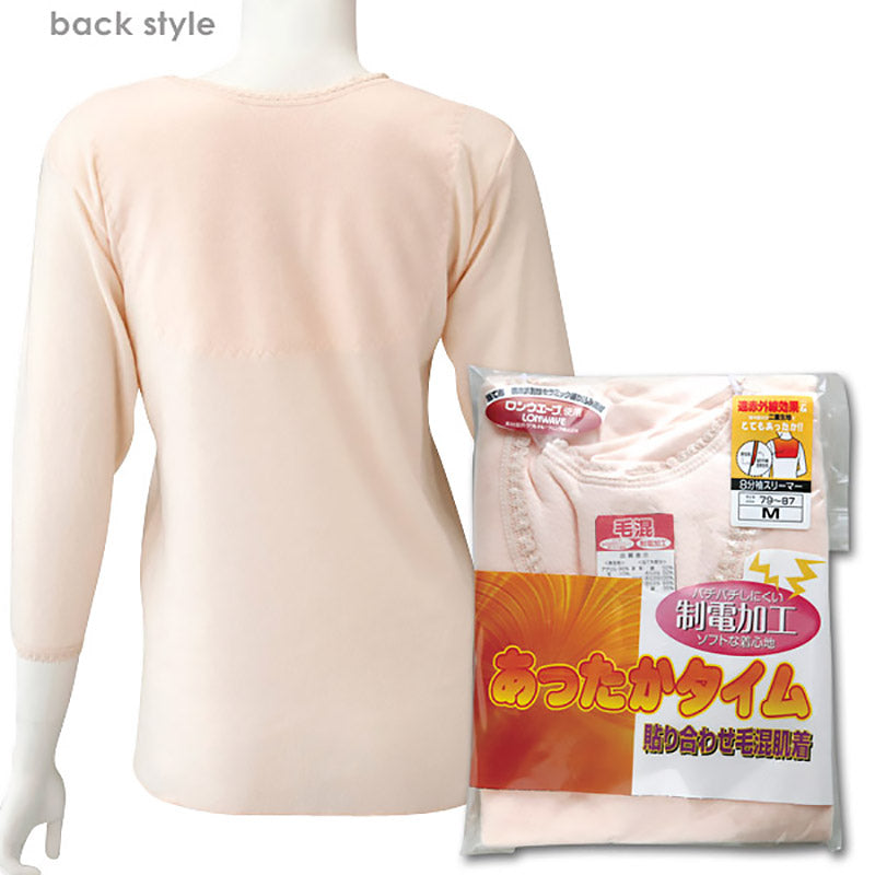 あったかタイム/婦人毛混貼り合わせ8分袖スリーマー/あったかたいむ/レディース/婦人用/女性用/インナー/下着/肌着/静電防止加工/静電加工 l-ls 443375-40 443375-41 443375-60 443375-61 443755-62 443775-42/ON/on-attakatime03