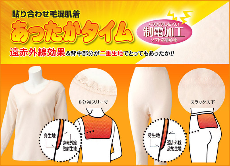 冷える部分に遠赤外線素材を貼りあわせたインナー「あったかタイム」です。