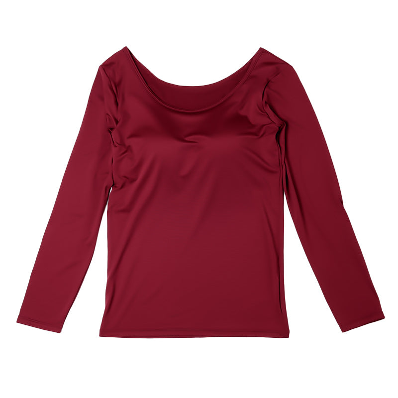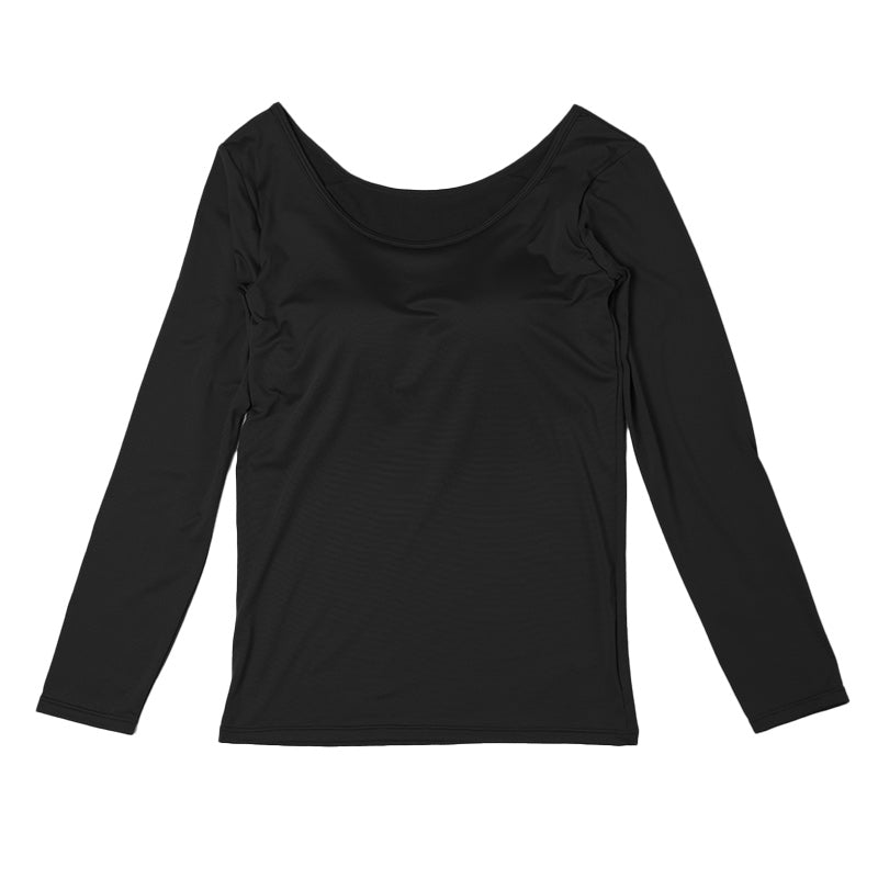 ホカロン 裏起毛 カップ付き 長袖 インナー レディース 薄手 保温 あったかインナー シャツ 襟あき広め M L LL