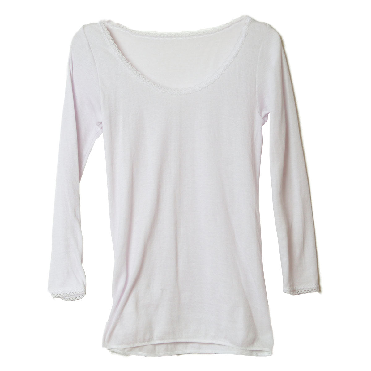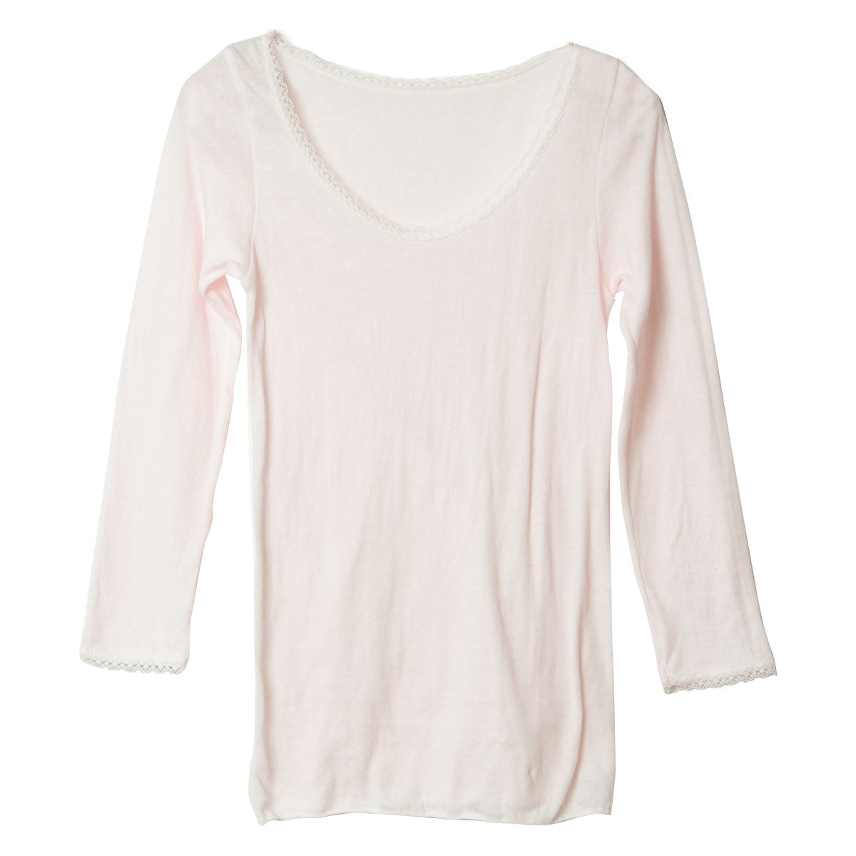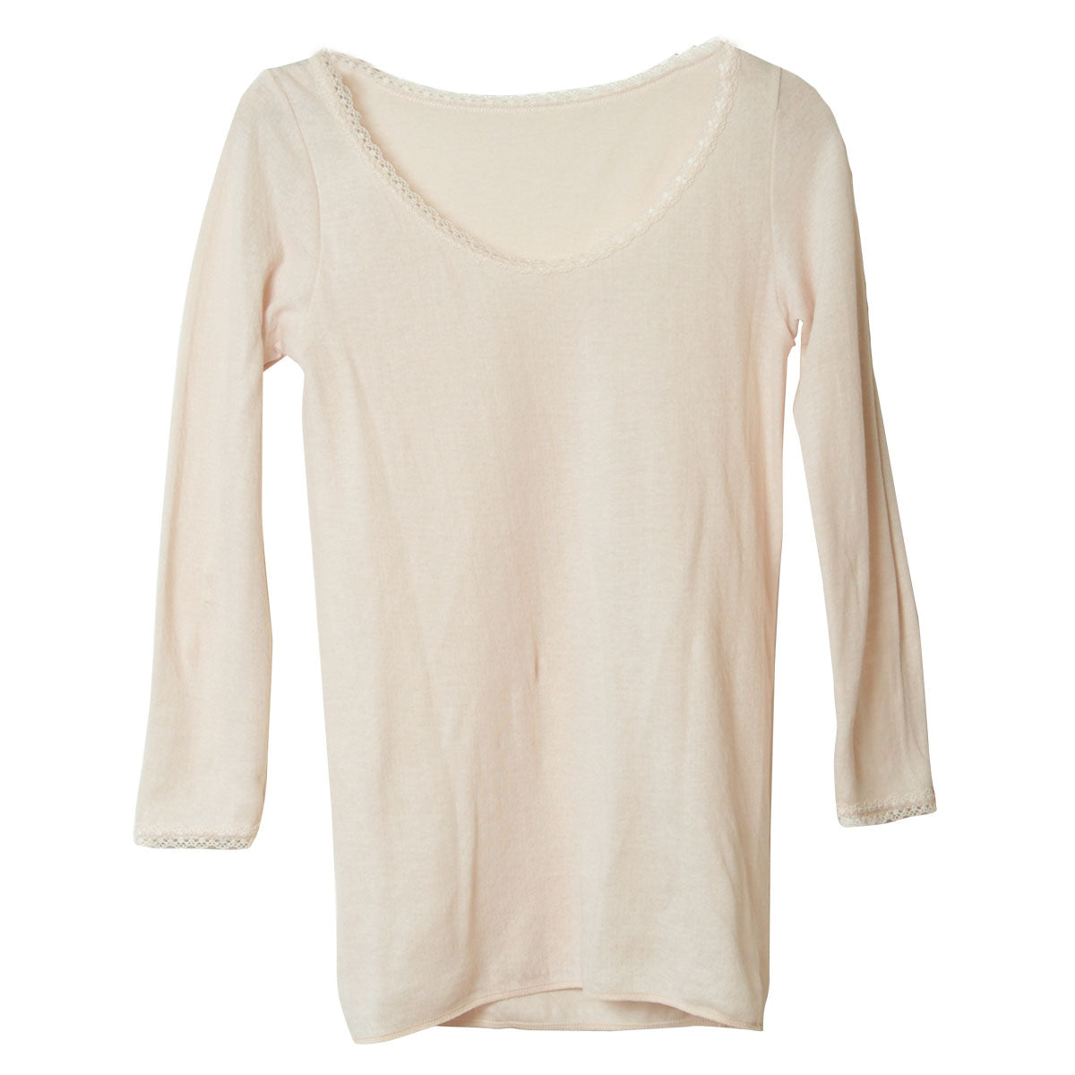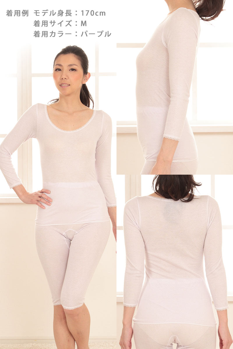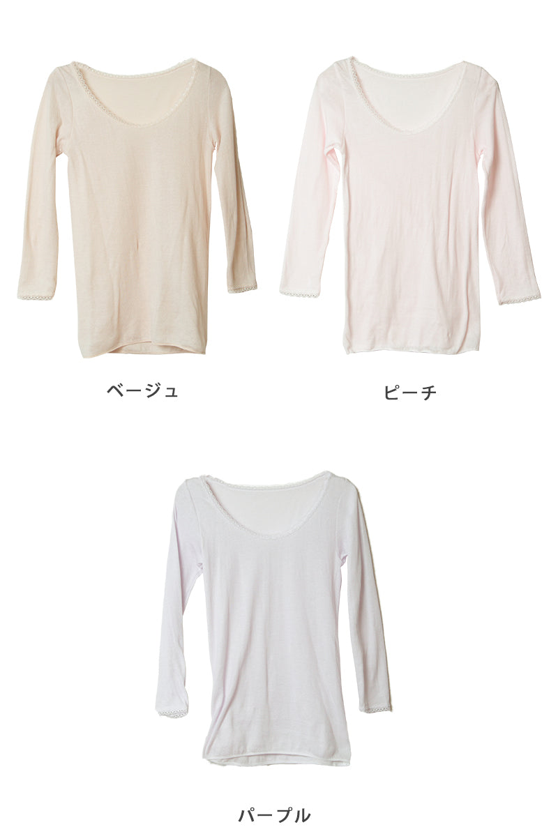 綿100% インナー レディース 長袖 ガーゼ 8分袖 シャツ M~LL 下着 肌着 締め付けない コットン 綿 婦人 女性 冷えとり あったか 暖かい 日本製 レース