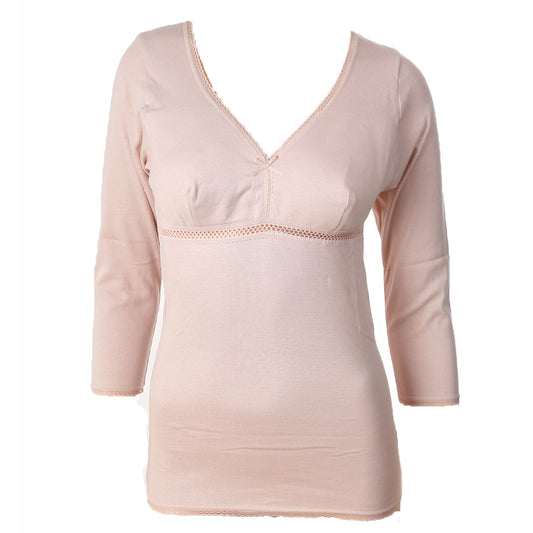 エジプト綿 広幅レース カップ付8分袖インナー M~LL (レディース 女性 カップ付きインナー 長袖シャツ 8分袖 綿100% コットン100% 幅広レース 白 綿100% 下着 肌着) (婦人肌着) (取寄せ)