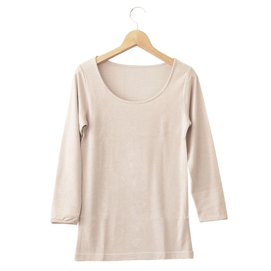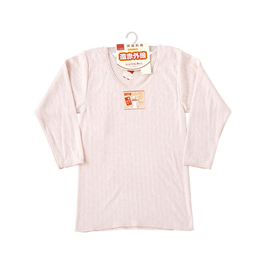 部分保温遠赤肌着 毛混袋編み 8分袖スリーマー(背中全体にセラミック) M~3L (長袖 インナー 下着 シャツ 冷え防止 防寒) (婦人肌着)