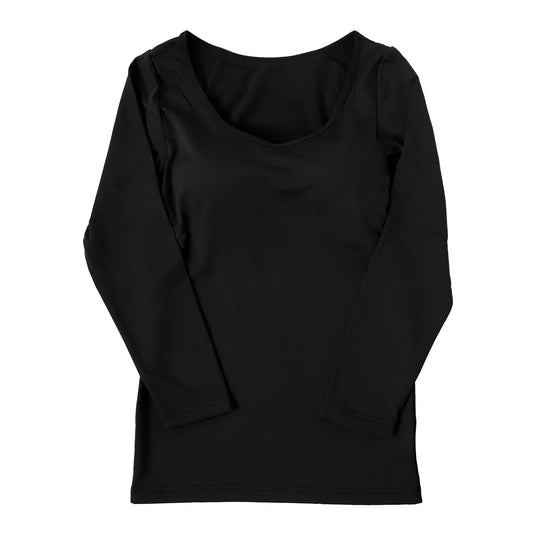 発熱インナー 長袖 レディース あたたか デコルテネック 深あき あったか 白 黒 ブルー ピンク パープル 黄色 おしゃれ 重ね着 秋冬用 M-L・L-LL 薄手 インナー 暖かい 下着 シャツ 防寒 冬