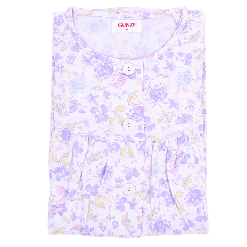 グンゼ ネグリジェ レディース 長袖 綿100% 前開き スナップボタン S M L LL 介護 ルームウェア パジャマ 婦人 コットン 快適 やわらか 敏感肌 秋 冬 花柄 ホームウェア オールシーズン さらふわ 敬老の日 ギフト 母の日 (送料無料)