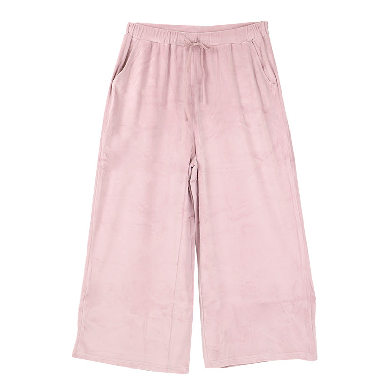 ルームウエア ワイドパンツ レディース 秋 冬 パジャマ 薄手 起毛 伸縮性 M L ベロア のびのび 部屋着 スウェット 女性 婦人 やわらかい 長ズボン 黒 紺 ピンク ベージュ