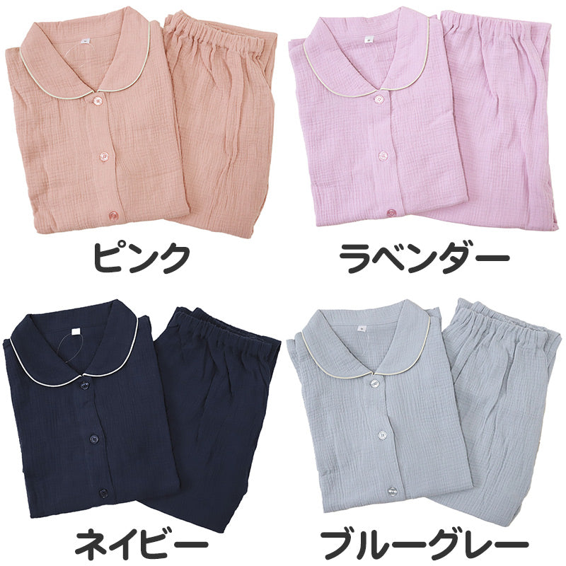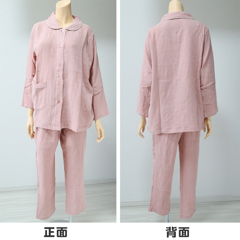 ダブルガーゼ生地でサラッとした着心地の 綿100% レディース パジャマ です。