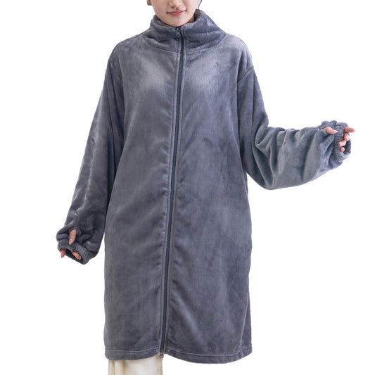 スリーパー 大人 レディース ルームウェア ロング丈 ジップアップ 羽織 ガウン 暖かい M-L 軽い 部屋着 毛布 防寒着 冬 起毛 羽織り 上着 パジャマ もこもこ ふわふわ 冷え対策