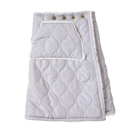 巻きスカート 防寒 ラップスカート ロング はっ水 ロング丈 裏ボア キルティング スカート 裏起毛 ひざ掛け M-L (あったか ハーフケット おしゃれ 可愛い かわいい ひざかけ ブランケット ふわふわ ポケット付き 冷え対策 無地 毛布)