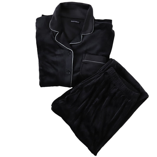 パジャマ レディース 秋 冬 かわいい 前開き 長袖 M-L ベロア やわらかい シンプル ストレッチ 薄手 上下 シャギー ルームウエア 無地 婦人 ピンク 黒 紺 ベージュ 水色 グレー (在庫限り)