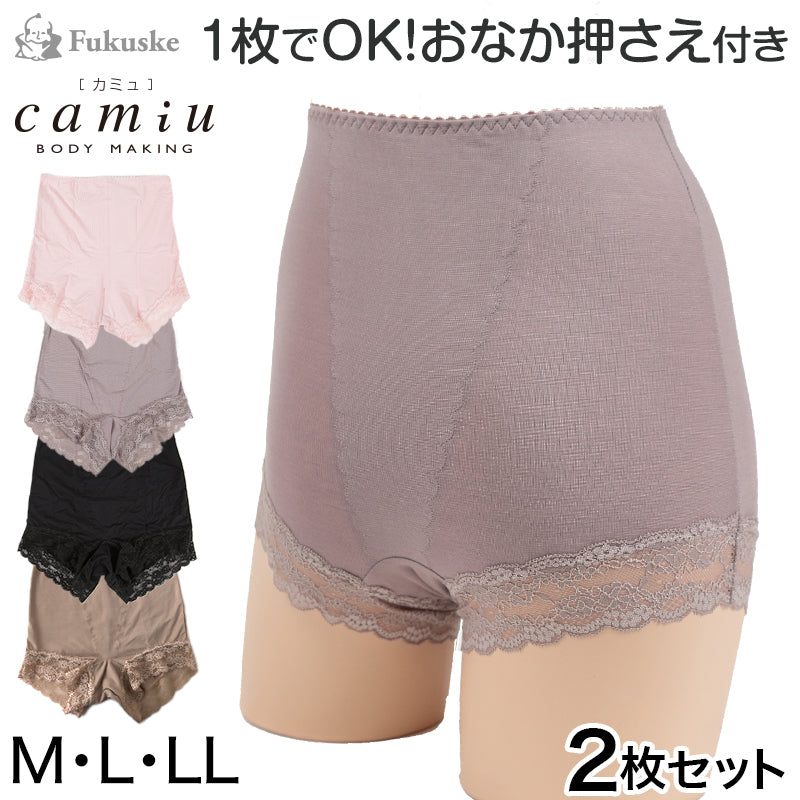福助(フクスケ)のガードルショーツブランド「camiu(カミュ)」シリーズの、脚口レース一分丈 2枚セットです。