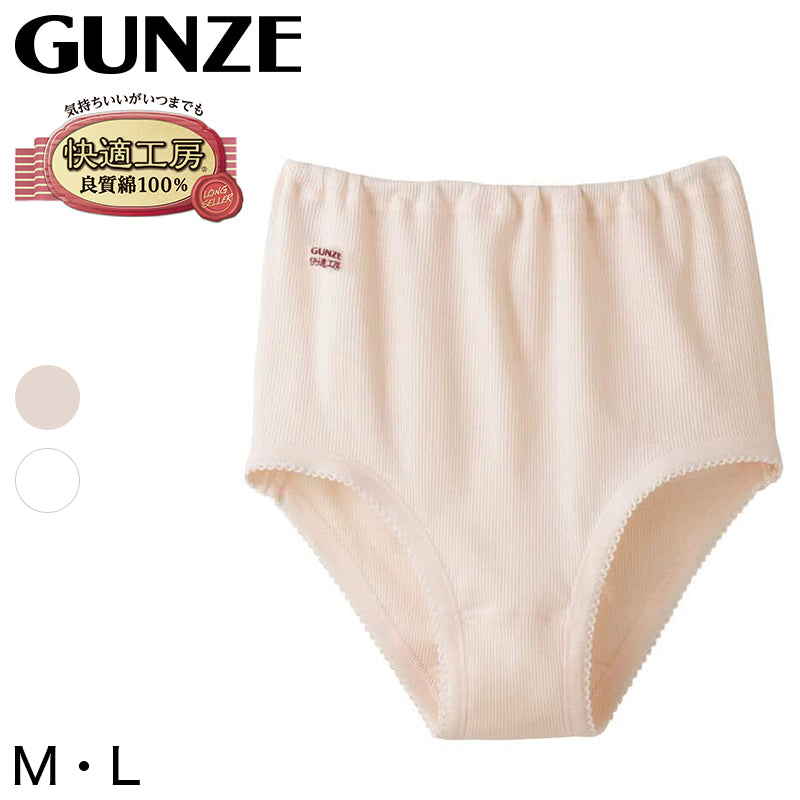 グンゼ 快適工房 婦人リブショーツ M・L (レディース GUNZE 綿100% コットン 女性 下着 肌着 パンツ インナー やわらか 日本製 白 ベージュ) (在庫限り)