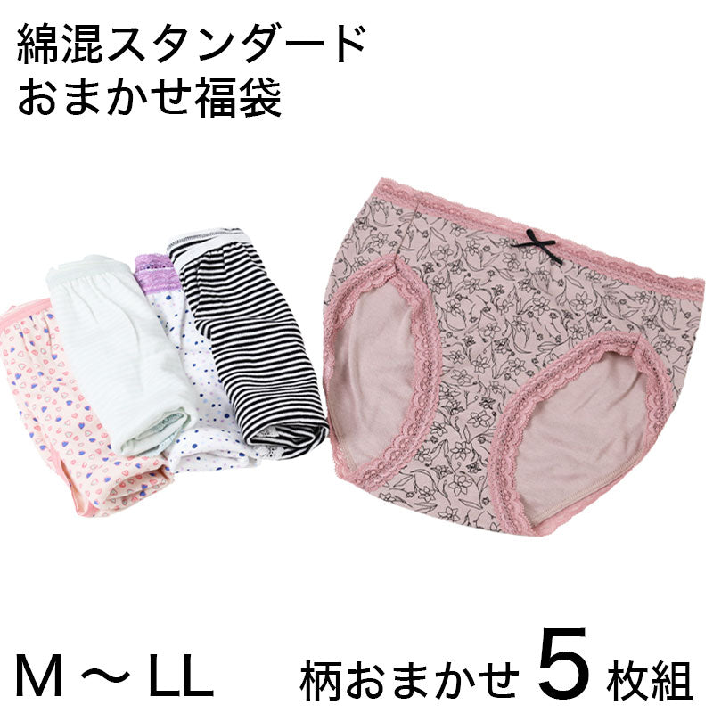 婦人ショーツ アソート5枚セット M L LL インナー 婦人 肌着 パンツ 綿混 コットン 30代 40代 50代 まとめ買い 5枚組 福袋