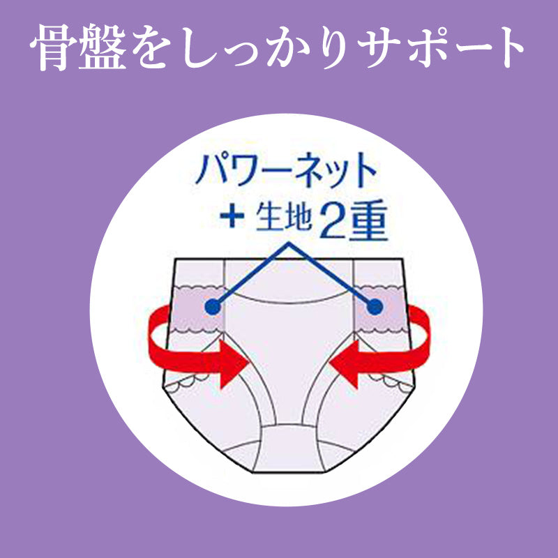 パワーネット+生地2重構造で骨盤をしっかりと支え、サポートしてくれます。