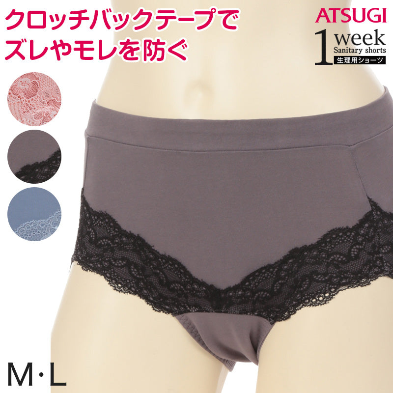 1week 多い日 レース付き 超ロング防水シート サニタリーショーツ M・L (生理用ショーツ アツギ 防水シート サニタリー 羽つき ショーツ インナー 肌着 下着 婦人肌着) (在庫限り)
