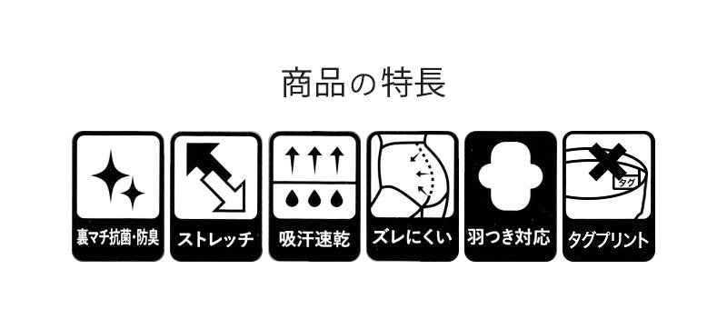 スポーツシーンはもちろん、普段のパンツスタイルの下ばきにもご利用いただけます。